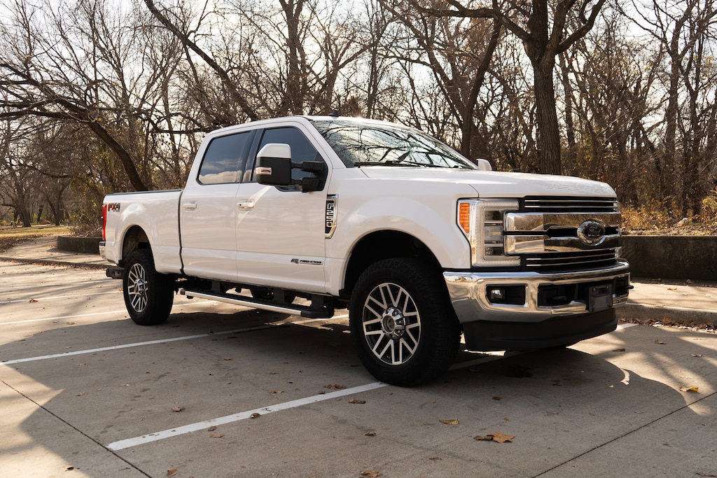 ENGINE: 6.7L 4V OHV POWER STROKE V8 TURBO DIESEL B20 manual push-button engine-exhaust braking and intelligent oil-life monitor, Extra Heavy-Duty 220 Amp Alternator, 34 Gallon Fuel Tank, 3.31 Axle Ratio, Dual 78-AH 750 CCA Batteries, LARIAT ULTIMATE PACKAGE Power Heated/Cooled Driver Seat w/Memory, PowerScope Trailer Tow Mirrors w/Memory, Automatic High Beam, rain-sensing windshield wipers, EASY ENTRY®/Exit Memory Drivers Seat Feature, Tailgate Step & Handle, LED Box Lighting, LED Center High-Mounted Stop Lamp (CHMSL), Intelligent Access w/Push-Button Start, Power Heated/Cooled Passenger Seat, Voice-Activated Navigation, HD and SiriusXM Traffic and Travel Link, NOTE: SiriusXM Traffic and Travel Link includes a, Services are not available in Alaska and Hawaii, Memory Power-Adjustable Pedals, Remote Start System, Ambient Lighting - Fixed Color, Power Telescoping/Tilt Steering Wheel/Column, heat, memory and audio controls, Remote Tailgate Release, TWIN PANEL POWER MOONROOF map lights and moonroof switches, WHEELS: 20 BRIGHT MACHINED CAST ALUMINUM magnetic painted pockets and bright hub covers/center ornaments, QUAD BEAM LED HEADLAMPS & LED TAILLAMPS LED fog lamps and LED Center High-Mounted Stop Lamp (CHMSL), ULTIMATE TRAILER TOW CAMERA SYSTEM 360 degree camera system and trailer reverse guidance, Display appears in center-stack screen, NOTE: Does not include customer placed trailer camera, Rear CHMSL Camera, Display in center stack screen, LED Center High-Mounted Stop Lamp (CHMSL) w/cargo light and rear video camera, 6 ANGULAR CHROME STEP BAR, BLIND SPOT INFORMATION SYSTEM (BLIS) cross-traffic alert and trailer tow (BLIS sensor in taillamp), ELECTRONIC-LOCKING W/3.55 AXLE RATIO, UNIVERSAL GARAGE DOOR OPENER (UGDO), TRANSMISSION: TORQSHIFT 6-SPEED AUTOMATIC (6R140), SelectShift. Ford LARIAT with White Platinum Metallic Tri-Coat exterior and Medium Light Camel interior features a 8 Cylinder Engine with 450 HP at 2800 RPM*. Local Trade, Recent Oil Change, Fully Detailed, Fully Inspected, Rear Camera, Bluetooth®