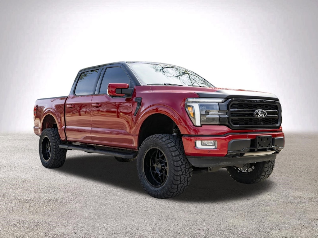 The 2024 Ford F-150 Lariat 4x4 SuperCrew blends rugged capability with premium comfort. Powered by a strong 3.5L EcoBoost engine and smooth 10-speed automatic, it delivers impressive performance. Rapid Red Metallic styling, modern technology, and a spacious leather interior create a refined yet tough truck, enhanced with a lift kit and premium aftermarket wheels. Key Options & Highlights: 3.5L EcoBoost engine with electronic 10-speed automatic, Lariat Series 502A with B&O premium sound system, 12-inch touchscreen with SYNC® 4 and wireless charging, Lift kit with premium aftermarket wheels and all-terrain tires, 360-degree camera with Pro Trailer Backup Assist and towing tech