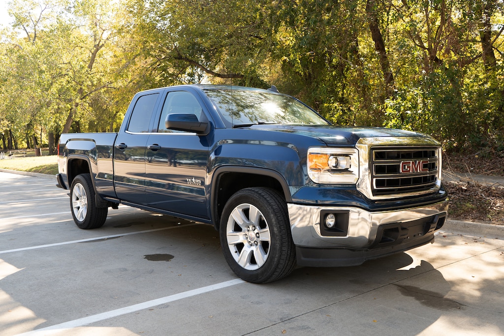 TEXAS SLE VALUE PACKAGE includes (AG1) driver 10-way power seat adjuster when ordered with (AZ3) seats only, (BTV) Remote vehicle starter system, (T3U) front fog lamps, (UG1) Universal Home Remote, (C49) rear-window defogger, (KI4) 110-volt AC power outlet and (CJ2) dual-zone climate control, (Z82) trailering equipment, and (G80) rear locking differential for 2WD models only, WHEELS, 20 X 9 (50.8 CM X 22.9 CM) ULTRA BRIGHT MACHINED ALUMINUM, ENGINE, 5.3L ECOTEC3 V8 WITH ACTIVE FUEL MANAGEMENT, DIRECT INJECTION and Variable Valve Timing, includes aluminum block construction (355 hp [265 kW] @ 5600 rpm, 383 lb-ft of torque [518 Nm] @ 4100 rpm; more than 300 lb-ft of torque from 2000 to 5600 rpm), TRAILERING EQUIPMENT includes trailer hitch, 7-pin and 4-pin connectors, SLE CONVENIENCE PACKAGE includes (JF4) power-adjustable pedals, (UD7) Rear Park Assist, (C49) rear-window defogger, (A48) sliding rear window, DIFFERENTIAL, HEAVY-DUTY LOCKING REAR, SEAT ADJUSTER, DRIVER 10-WAY POWER, SEATS, FRONT 40/20/40 SPLIT-BENCH 3-passenger. Includes driver and front passenger recline with outboard head restraints and center fold-down armrest with storage. Includes manually adjustable driver lumbar, lockable storage compartment in seat cushion, and storage pockets. (STD), AUDIO SYSTEM, 8 DIAGONAL COLOR TOUCH SCREEN WITH INTELLILINK, AM/FM/SIRIUSXM with USB ports, auxiliary jack, SD card slot, Bluetooth® streaming audio for music and most phones, hands-free Smartphone integration, Pandora Internet radio and voice-activated technology for radio and phone (STD), TRANSMISSION, 6-SPEED AUTOMATIC, ELECTRONICALLY CONTROLLED with overdrive and tow/haul mode. Includes Cruise Grade Braking and Powertrain Grade Braking (STD). GMC SLE with Stone Blue Metallic exterior and Cocoa/Dune interior features a 8 Cylinder Engine with 355 HP at 5600 RPM*. Serviced here, Non-Smoker vehicle, Local Trade, Non Smoker, Recent Oil Change, Fully Detailed, Fully Inspected, Rear Camera, Bluetooth®